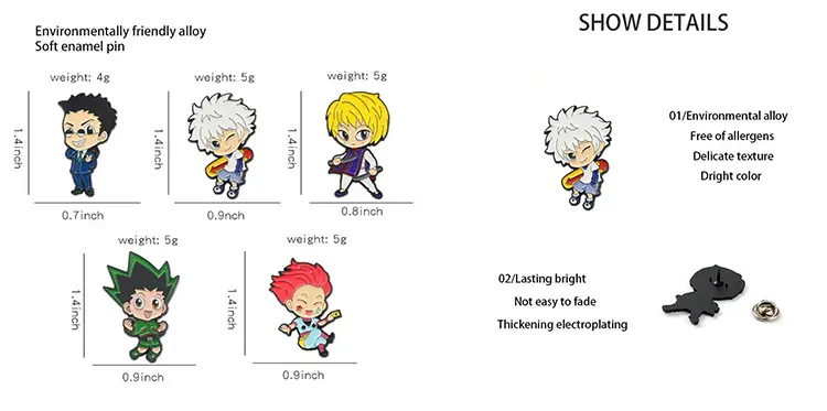 Bring the world of Hunter x Hunter to your everyday style. These chibi enamel pins feature fan-favorite characters in vibrant colors with a durable metal finish. Lightweight, stylish, and perfect for backpacks, jackets, or anime displays. Select your preferred character from the variation list.