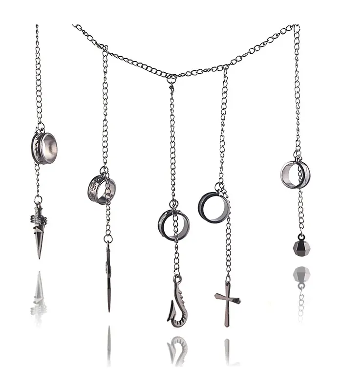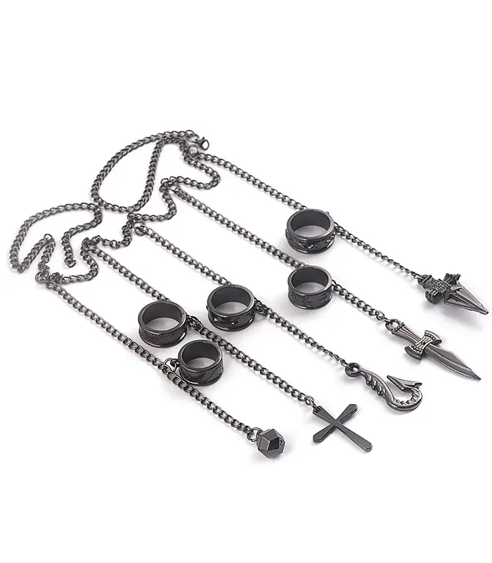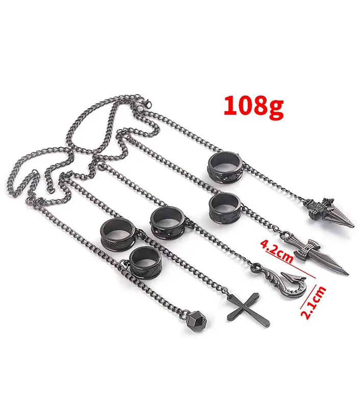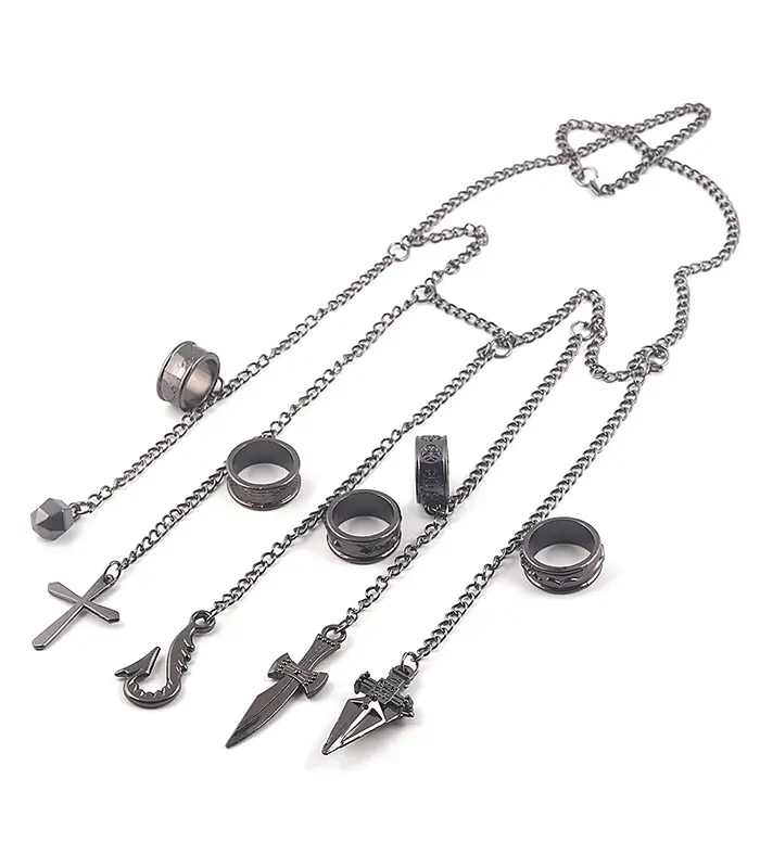 Kurapika-inspired multi-chain ring necklace set |