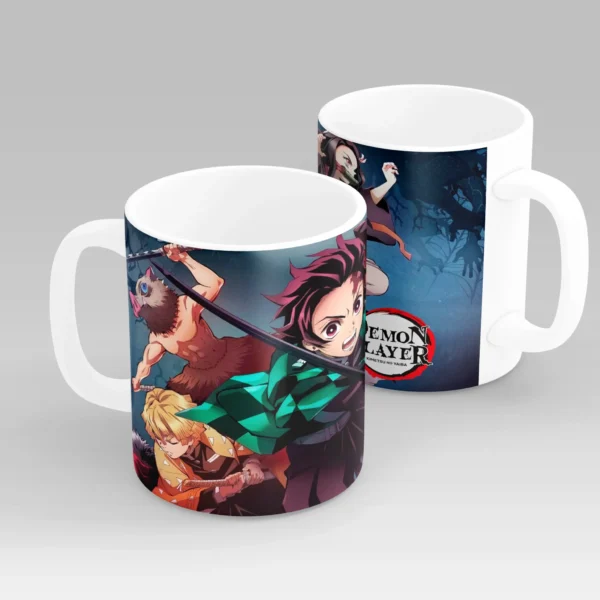 The minimalist strip design highlights their fierce expressions, making this mug both stylish and bold. Perfect for anime fans who love subtle but powerful designs.